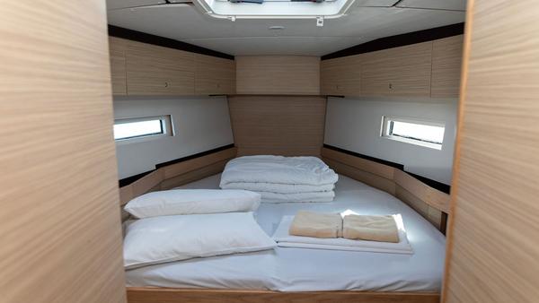 Aboard this sleek, nearly 57-foot yacht, you'll find five double/twin cabins, each featuring an operable porthole for fresh sea breezes. Every cabin boasts ample storage space, a small closet, and a mirror, providing both comfort and functionality for your stay.